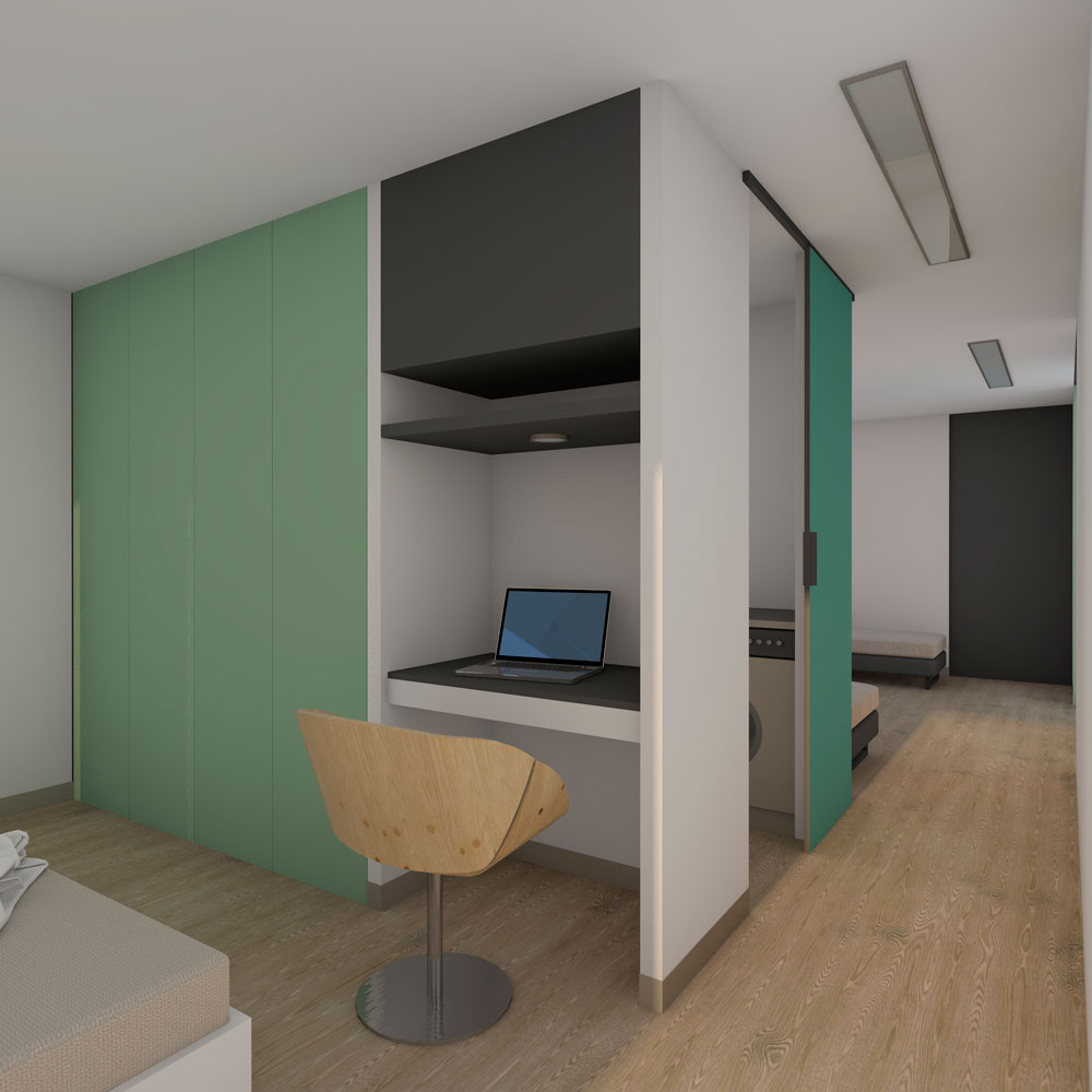 Un sólo ambiente con todo lo necesario para disfrutar del espacio propio.