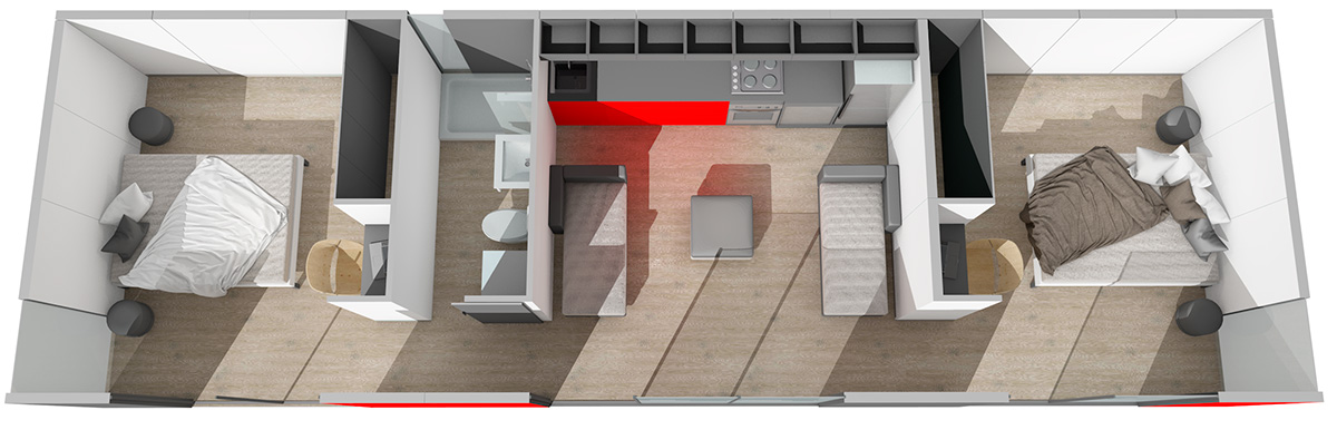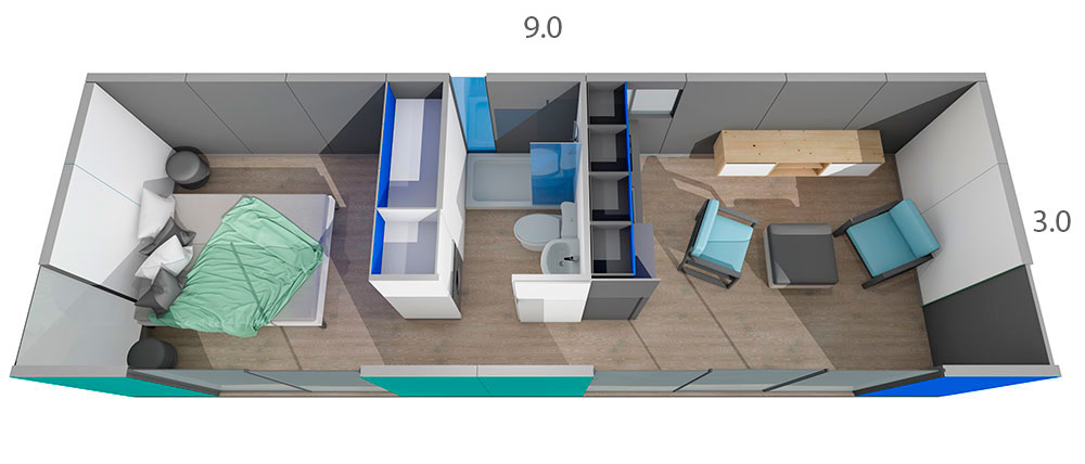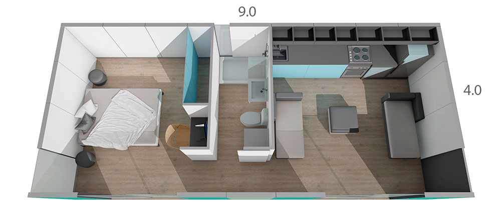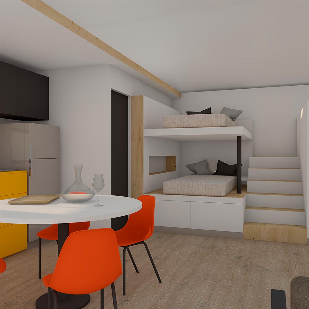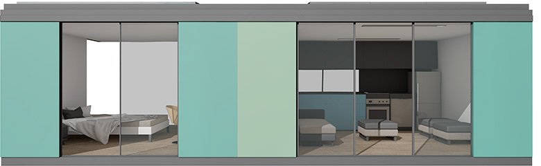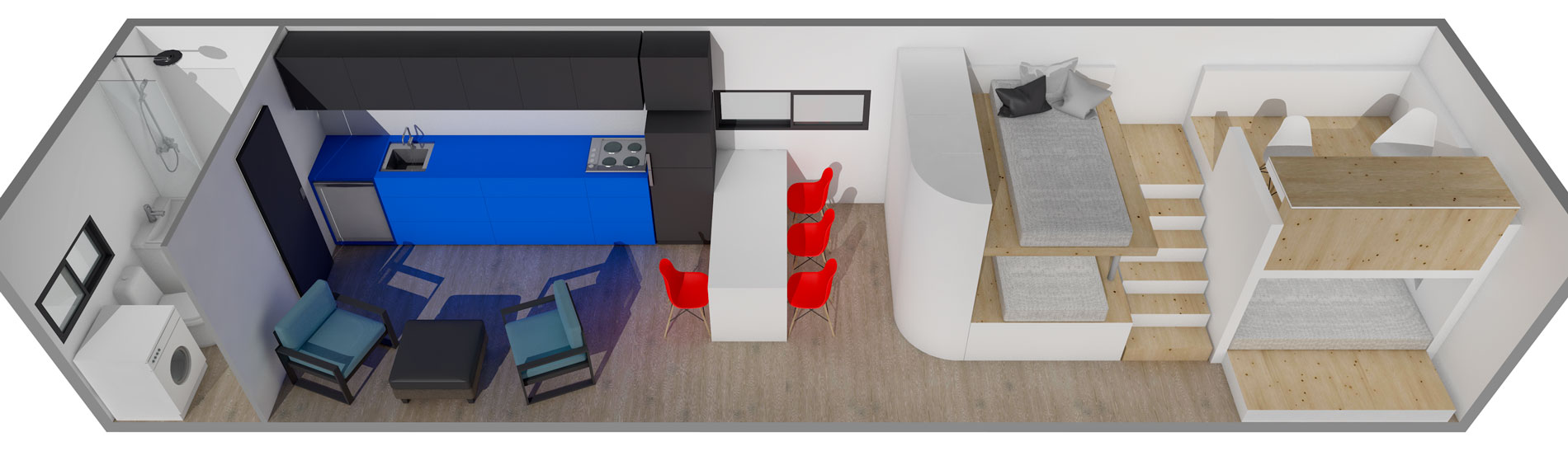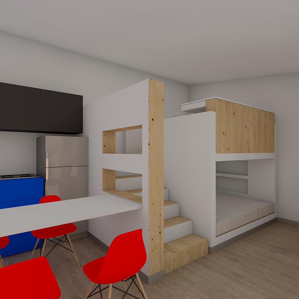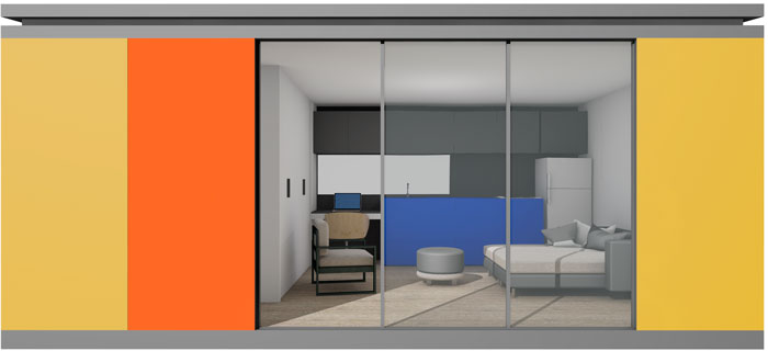 Distribuye tu espacio con mobiliario independiente y móvil.